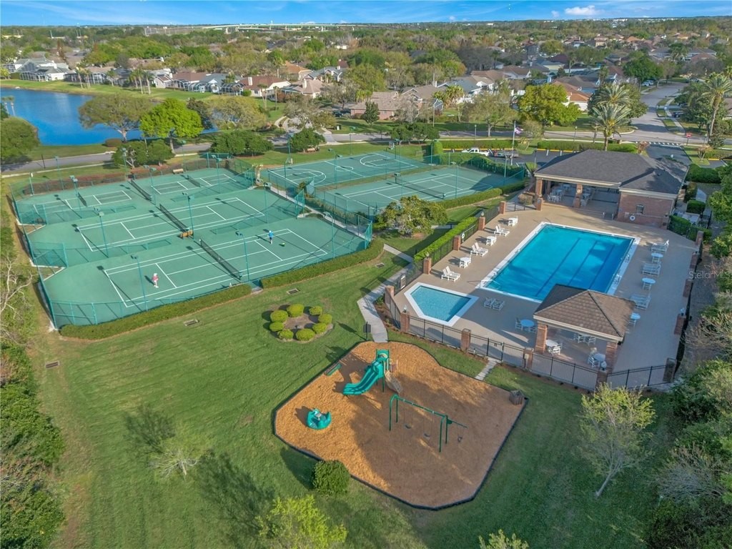 Welcome to this charming one-story, 3-bedroom, 2-bath home set on a sprawling corner lot with tranquil pond views. Shaded by mature oak trees, the property offers a peaceful, park-like setting and a desirable location near the community's back gate for added convenience. Inside, the home features a spacious and functional layout with formal living and dining rooms, plus a comfortable family room with a cozy fireplace. Sliding glass doors open to a screened porch, creating the perfect space to relax while enjoying the serene backyard and water views. The kitchen is well-appointed with granite countertops, a breakfast bar, and a bright dinette area, making it ideal for both everyday living and entertaining. The Primary Suite also opens directly to the screened porch, offering a private retreat with easy indoor-outdoor living. Residents enjoy a variety of community amenities, including a pool, playground, and tennis courts, all while being conveniently located near shops, restaurants, and everyday conveniences.